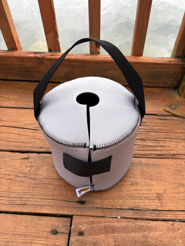 Neoprene spool cover. Protects against scratches, sun damage, salt, and debris. Durable, lightweight, and easy to use—perfect for keeping your spools protected on and off the water with exclusive Lidngren-Pitman logo.